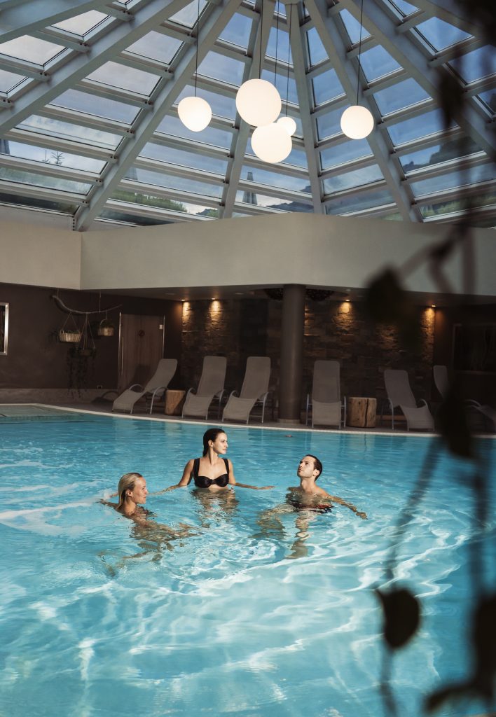 Alleni gambe e fiato in pista, corri immerso nella montagna e quando la fatica si spegne, ti rigeneri con il gruppo presso l’area benessere Alpine wellness di Aquagranda o davanti a un ottimo piatto presso l’Aqua Alpine Bistrot.