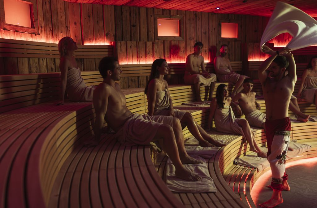 Un’area completamente rinnovata con una architettura ricca di elementi tipici della cultura montana, dove troverete un percorso immerso nella tranquillità e nel silenzio, che esaudirà ogni vostro bisogno di relax. Scegliete le saune con la temperatura e il grado di umidità più adatto a voi, liberate le vie respiratorie grazie ai bagni di vapore curativi, sperimentate tutto il relax della piscina con acqua salata, il percorso Kneipp, i lettini riposanti oppure concedetevi un meritato massaggio, scegliendo tra: rilassante, sportivo o personalizzato oppure uno dei nostri speciali trattamenti corpo. Ogni giorno all’interno dell’area si svolgeranno rituali “Aufguss” con il maestro di sauna.