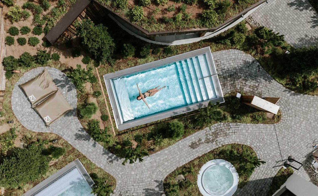 La nuova area esterna è un vero toccasana per il corpo e la mente. Avvolti dalle montagne che circondano il centro i nostri ospiti potranno godersi il meritato relax in una delle quattro vasche idromassaggio con temperatura acqua a + 35° .